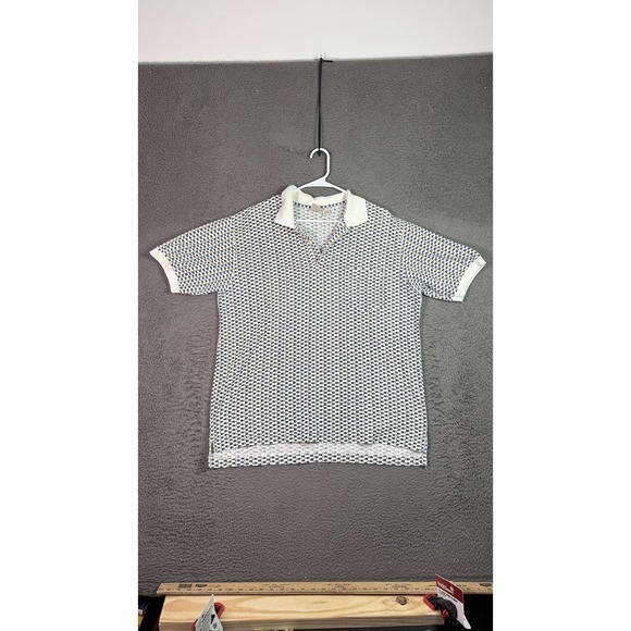 Vintage Windridge Polo Shirt Mens XL White Blue Pattern Knit Short Sleeve 90s
