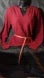 Elegant deep red V-neck sweater. Ideal for versatile styling. Has belt loops to step look up
