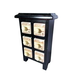 Vintage Wine Theme French Apothecary Spice Rack Wooden Box 6 Porcelain Drawers