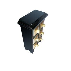 Vintage Wine Theme French Apothecary Spice Rack Wooden Box w/ 6 Porcelain Drawers