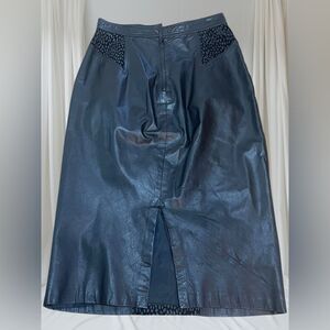 Vintage Winlit Black Leather Zipper Midi Pencil Wiggle 28” Fitted Skirt