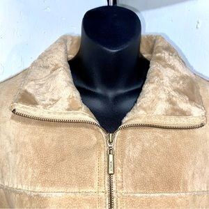 This Vintage Winlit brand Suede tan zip up jacket with acrylic fur features 100% Genuine Leather shell with fur like stitching. This Jacket is a Size Large. Stylish tan coloring with fuzzy collar. Very unique piece. Perfect for cowgirl/western styles. Excellent like new condition! Make me an offer!