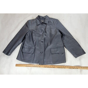 Vintage Winlit Jacket Womens Size 2X Black New York Large Button Leather Coat. Please see attached photos for measurements and blemishes.