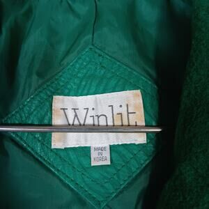 Vintage Winlit Women Jacket Size Medium Green Felt and Leather Panelsd