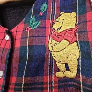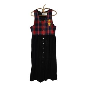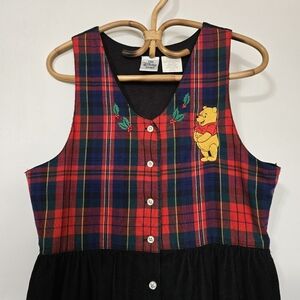 Vintage Winnie Pooh Bear Plaid Sleeveless Buttondown Dress Embroidered Detail