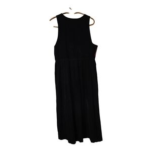 Charming sleeveless dress featuring a red plaid top with embroidered detail. Black skirt with button-down front.