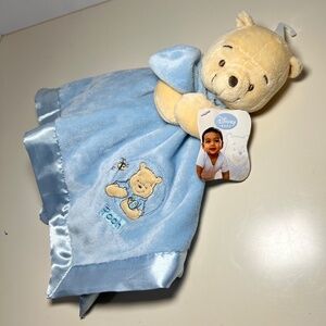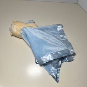 Vintage Winnie The Pooh Disney Baby Lovey Blanket Blue Plush Satin Rattle