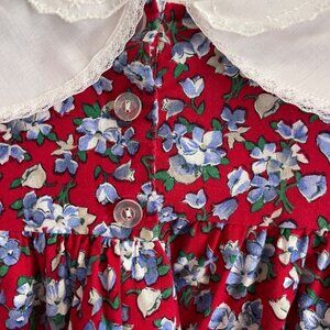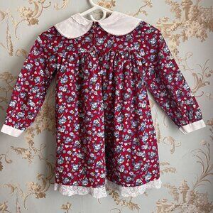 Vintage Winnie The Pooh Girls Dress Sz 6X Floral Peter Pan Collar Lace Trim USA
