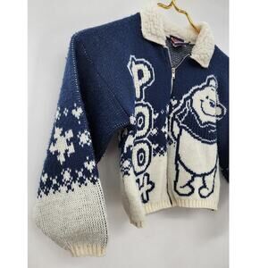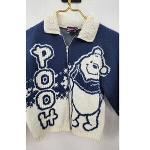 Vintage Winnie The Pooh Kids Full Zip Sweater Size 5/6 Made In USA Winter Snow