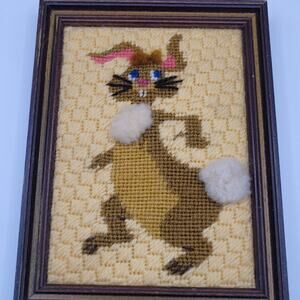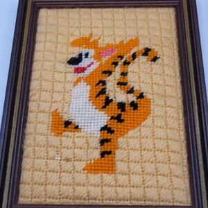 Set of 6 needlepoint framed art pieces. Measures approx 6" x 5" some small imperfections. See photos for detail
