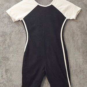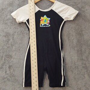 Adorable vintage Winnie the Pooh leotard in girls size 10/12. Features a black body with contrast white sleeves and trim, plus a colorful Pooh and Piglet graphic on the front that reads “100 Acre Relay.” This one-piece short-sleeve leotard offers great stretch and comfort—perfect for dance, gymnastics, play, or Disney collectors.