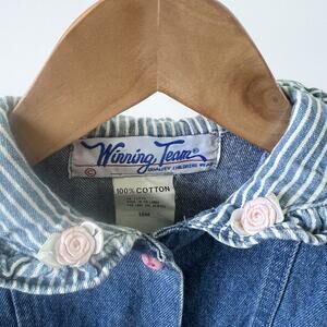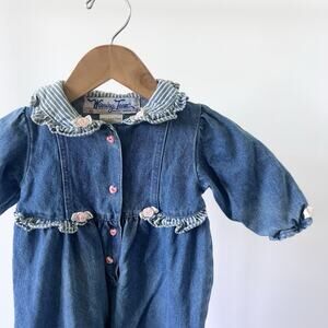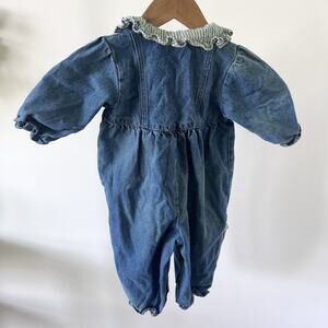 Vintage Winning Team Bubble Denim Jean Romper USA Baby 18 Months Overalls RARE