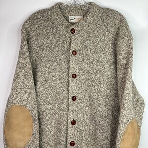 Vintage Winona Knits Oatmeal Patch Elbow Wool Cardigan Sweater Large