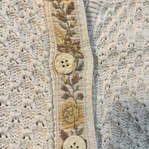 Vintage Winona Knits Sweater Women Medium Chunky Beige Crew Neck USA Made Floral