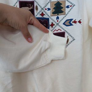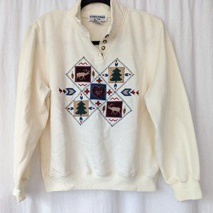 Vintage Winter Festive Cream Sweater Size Medium Petite