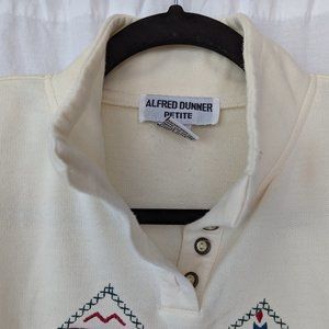 Alfred Dunner Petite Cream Pullover Graphic Design Sweater