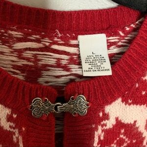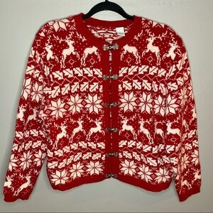 Vintage Winter Holiday Snowflake Deer Silk Blend Cardigan Sweater
