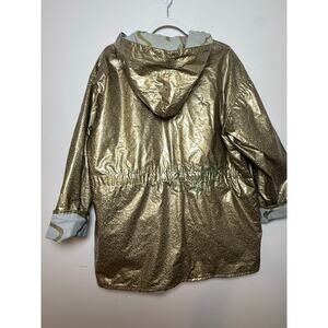 Vintage Wippette Gold Metallic Hooded Raincoat Women's L Retro 80s/90s Zip
