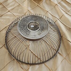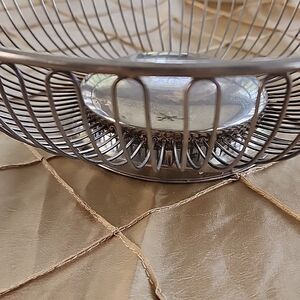 This is a vintage bread, roll or fruit wire basket. Tarnished and has marks due to age and use. I'm thinking this is vintage 90's. I used wire baskets to place rolls in, with a cloth cover. I am no longer in the catering business and do not need these anymore. My last several years of weddings, the brides were married in barns, and wanted me to use tarnished pieces.
