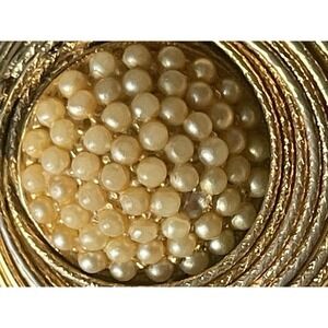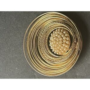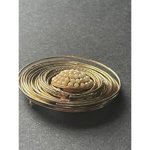 Vintage Wire Circle Faux Pearl MCM Minimalist Gold Tone Cocktail Retro Brooch