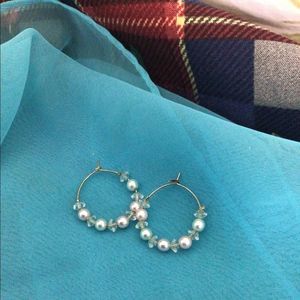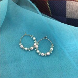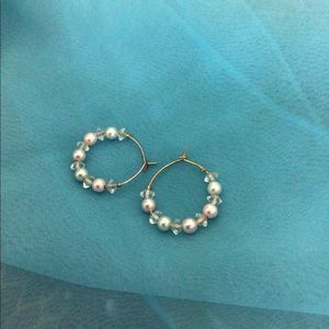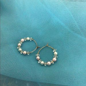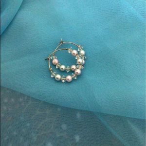 Vintage Wire Earrings Delicate Pink & White Beaded Earrings Pierced Hoops