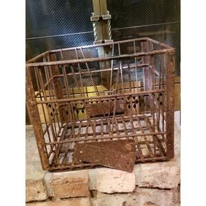 Vintage Wire Milk Crate, Rusty Large Storage, Farmhouse Primitive Kitchen