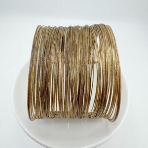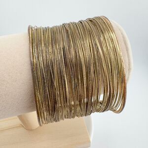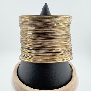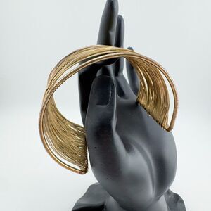 Vintage Wire Wide Gold Tone Multi-Strand Cuff Bracelet Bohemian Statement Retro
