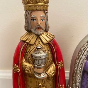Vintage wise men candle holders made in Japan... Red one is 11” tall and the purple one is 10 1/2”
