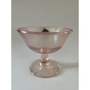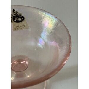 Vintage With tag Fenton Pink Velva Rose Stretch Iridescent Compote Glass Bowl.