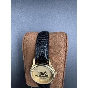 Vintage Wittnauer Watch Womens 24mm Gold Tone Pegasus Leather Band New Battery G