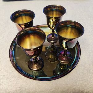 Selling a set of 4 Small Silver-plated Goblets with Serving Tray