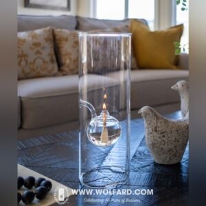 In 1972, glassblower Jon Wolfard gave his wife Linda a handblown glass oil lamp that he had made. The original oil lamp became a centerpiece, and friends constantly remarked about Jon’s unique design and requested lamps for themselves. The lamps turned into a phenomenon and were sold at the Whitney Museum of American Art in 1973. In 2004, Linda passed the company to 25-year employee Richard Trevethick and partner Tom Relyea who moved the company to Sebastopol, California. The oil lamps are handblown from borosilicate glass, adding durability to the classic designs. Skilled glassblowers craft each object using Wolfard’s exclusive “in-flame” technique at higher-than-usual temperatures. This presents an additional challenge for the glassblower who must have exceptional skills at the craft. No two lamps are exactly alike, due to variations in this art form.