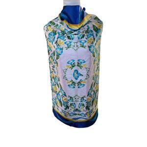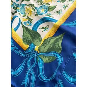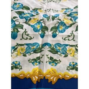 Vintage Woman Scarf Godiva Blue White Green Yellow Silk Morning Glory Classic