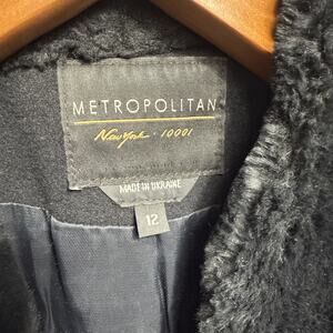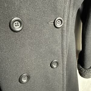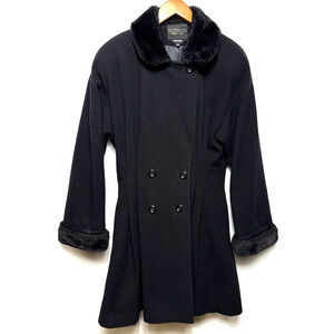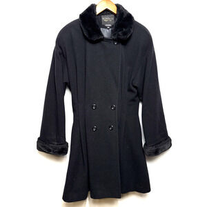 Vintage Woman's Black Wool Coat Faux Fur Trim Size M Classic Preppy Winter Style