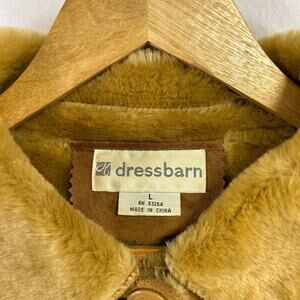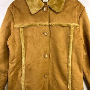 Vintage Woman's Faux Suede Leather Fur Coat - Size Large Boho 70s Retro