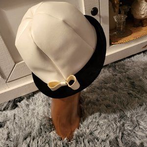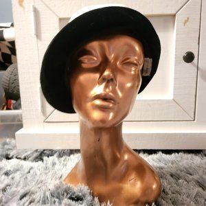 Vintage Woman's Hat/Cap/Fedora in White Faux Leather Black Faux Fur ~Union Made