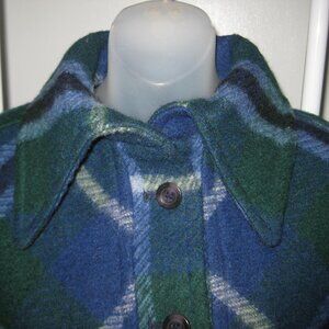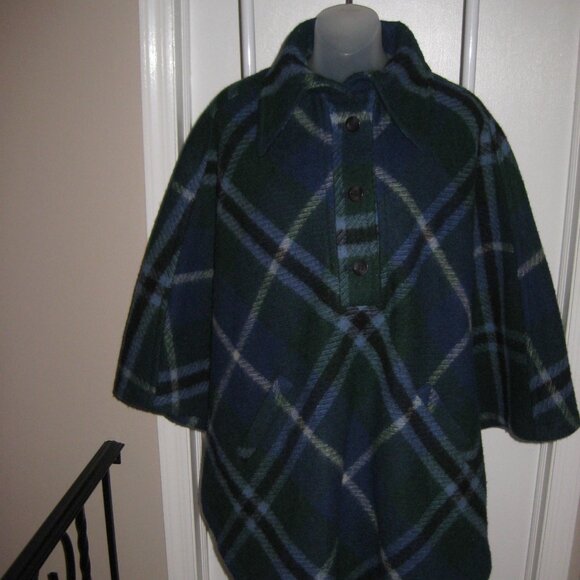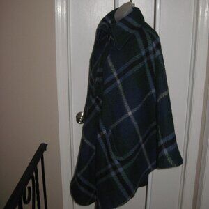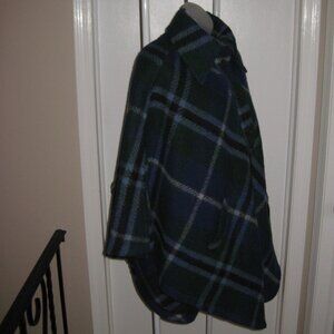 Vintage Woman's Jimmy Hourihan Blue Green Plaid Wool Cape Made in Ireland