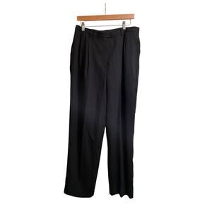 Evan-Picone High Rise Black Pleated Dress Pants SZ 14 BELT LOOPS STRAIGHT LEG Trousers and lining are 100 % Polyester with side pockets, lined, welted/buttoned back pocket, darts, zipper/button fly,
