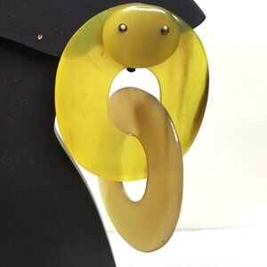 Vintage Women 1960's Yellow Amber Lucite Clip on Hoop Earrings Statement Piece