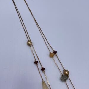 Vintage Women 31 Inch Double Strand Glass Geometric Shape Beads Chain Necklace