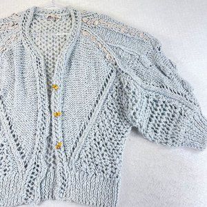 Vintage Women 38 US 8/M Barcelona Spain Blue Chunky Knit Leather Accent Sweater