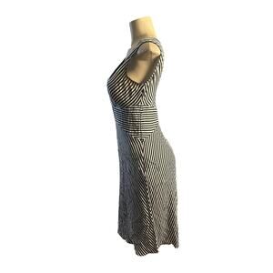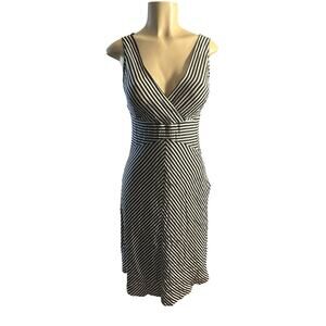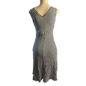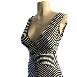 Vintage Women 6 Spiegel 100% Silk Striped Black White Dress Sleeveless V-Neck