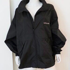 The Vintage Women DIVE diving Jacket is a stylish and functional outerwear option for women. Made with a durable nylon outer shell, this mid-length windbreaker jacket features a full zip closure, hood, and pockets for convenience.