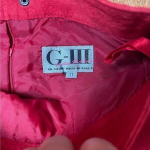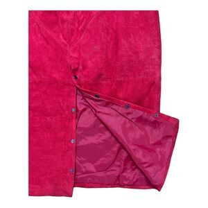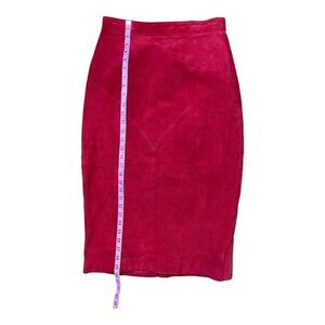 Vintage Women G -III Red Suede Leather Pencil Skirt Size 11 Sexy Buttons On Back