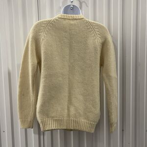 Vintage Women Hand Knit Fisherman Cable Knit Beige Cardigan Sweater Size M Cream