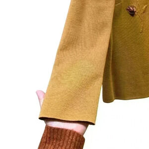 100% wool. Tan color. size 44 on tag. Button-Down.