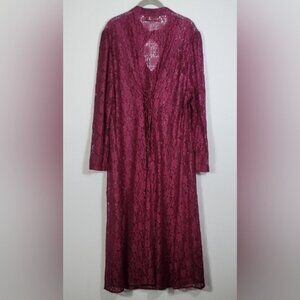 Vintage Women Sheer Lace Maxi Gown 22 Red Renaissance Corset Button Up Witch