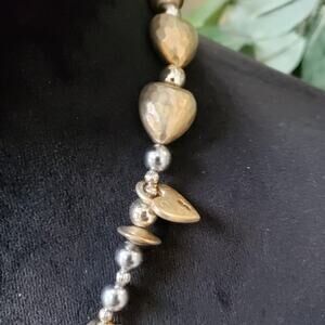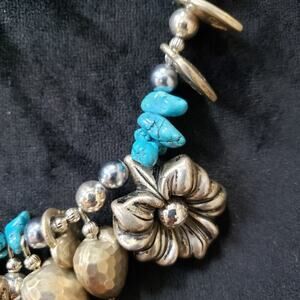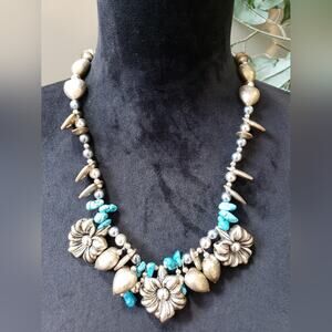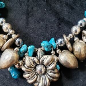Vintage Women Turquoise & Silver Bead Brass Flower Pandant Necklaces w/ Lobster.