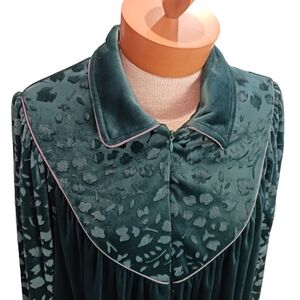 Vintage Women Velour Nightgown Robe Studio 36 Green Floral