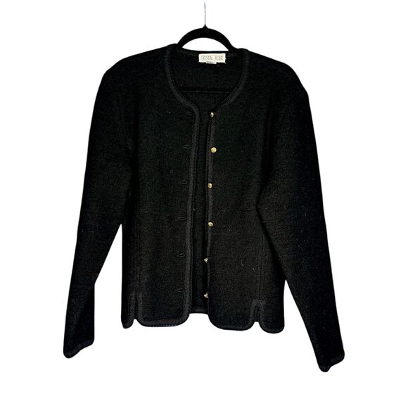 Vintage Womens 100% Wool Tailored Black Chunky Knit 90s Cardigan Quiet Luxury L